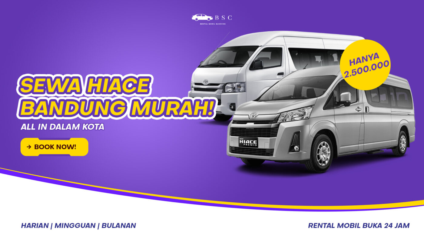 Melalui layanan dari bscrentalmobil.com, Anda bisa mendapatkan Toyota Hiace dengan kondisi prima, kabin luas, serta driver profesional yang siap mengantar ke berbagai tujuan di Bandung dan sekitarnya. Dengan satu kendaraan, seluruh rombongan dapat menikmati perjalanan lebih nyaman, hemat, dan terorganisir.
